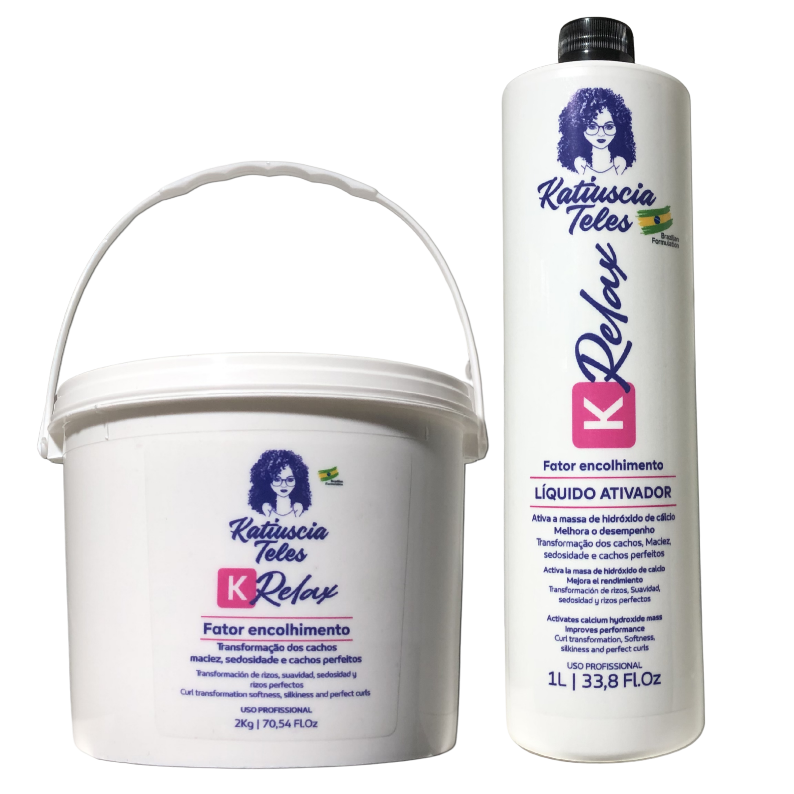 O Kit KT Relax, conta com 1 Massa Hidróxido de Cálcio (2kg) e 1 Liquido Ativador (1L). Combinados, garantem um relaxamento feito com os cabelos molhados, proporcionando mais conforto as clientes durante o processo, pode ser feito também em cabelos secos, possibilitando relaxamento e mechas no mesmo dia.