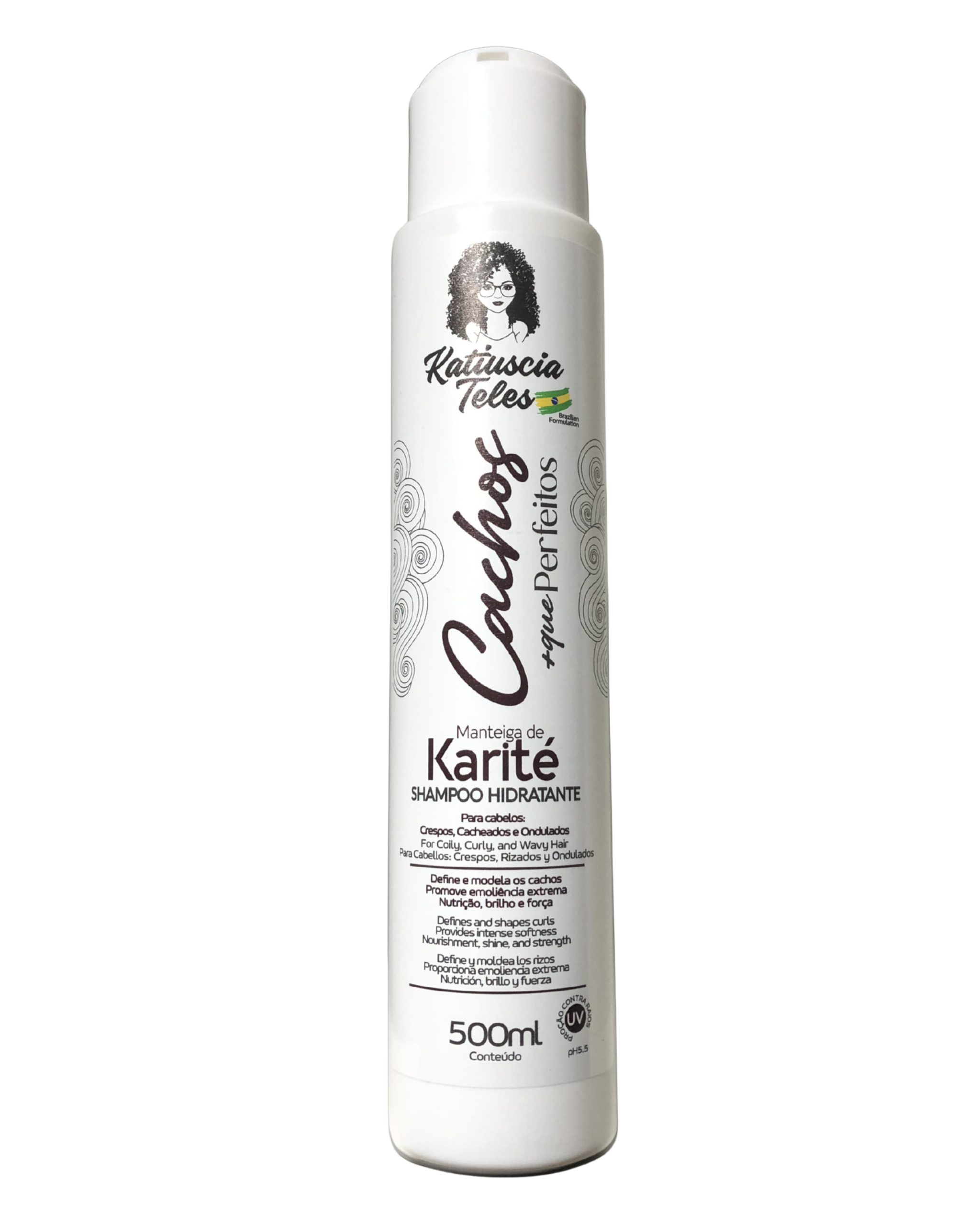 Shampoo Karité – Cachos + que perfeitos: O Shampoo Cachos + que Perfeitos se beneficia da ação poderosa do Karité que penetra profundamente nos fios nutrindo, hidratando e revitalizando os fios, exclusivamente desenvolvida para tratar os cabelos que passaram ou ainda estão sobre efeito de ação químicas, como relaxamento e tinturas, promovendo reparação e restauração dos cabelos, Shampoo limpa de maneira suave, deixando os cabelos nutrido macios e brilhosos das raízes até as pontas.