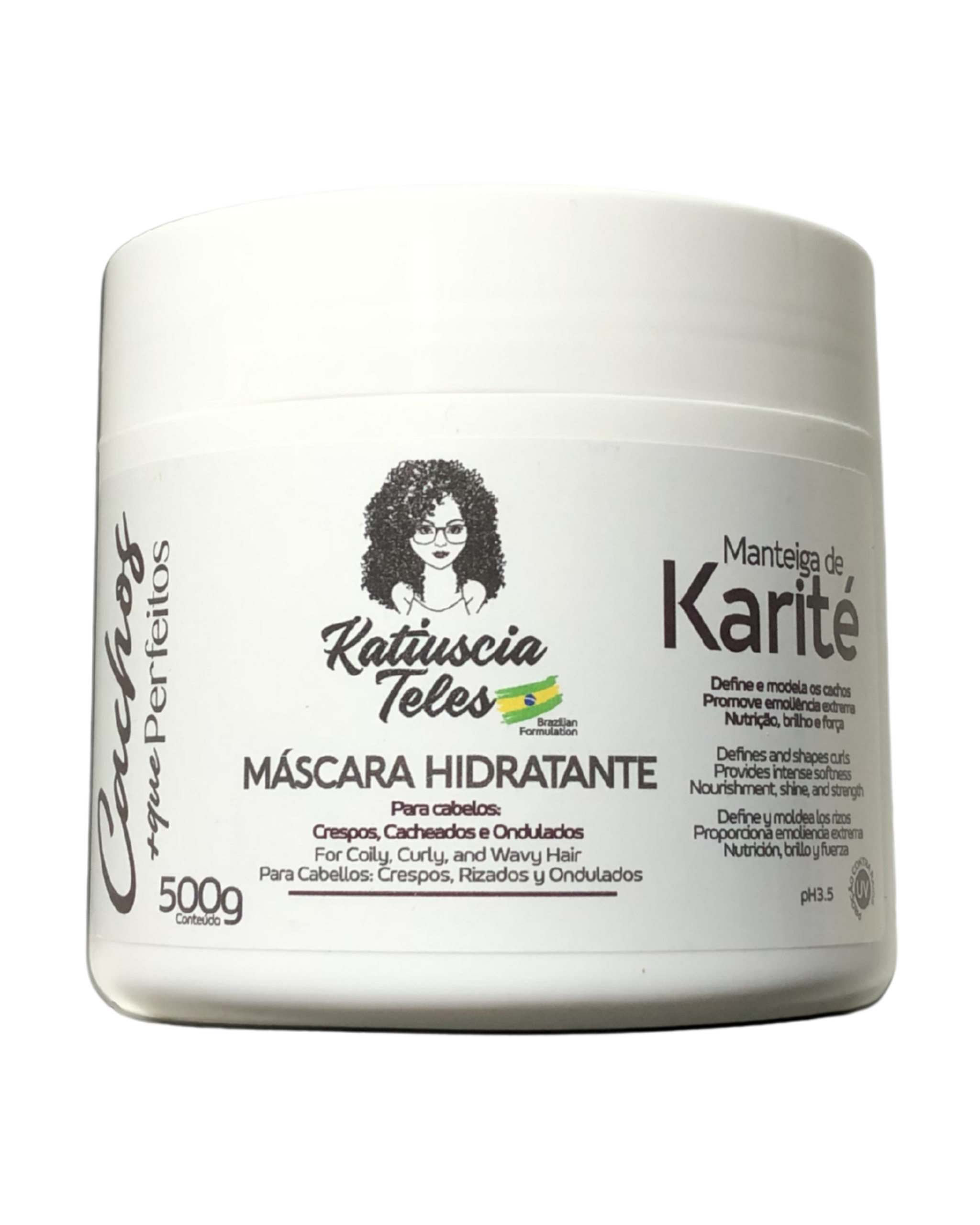 Máscara Hidratante Karité – Cachos + que perfeitos: A máscara Cachos + que perfeitos se beneficia da ação poderosa do Karité que penetra profundamente nos fios nutrindo, hidratando e revitalizando os fios, exclusivamente desenvolvida para tratar os cabelos que passaram ou ainda estão sobre efeito de ação químicas, como relaxamento e tinturas, promovendo reparação e restauração dos cabelos, A máscara se utiliza dos benefícios do Karité para transferir Hidratação profunda e nutrição intensiva.