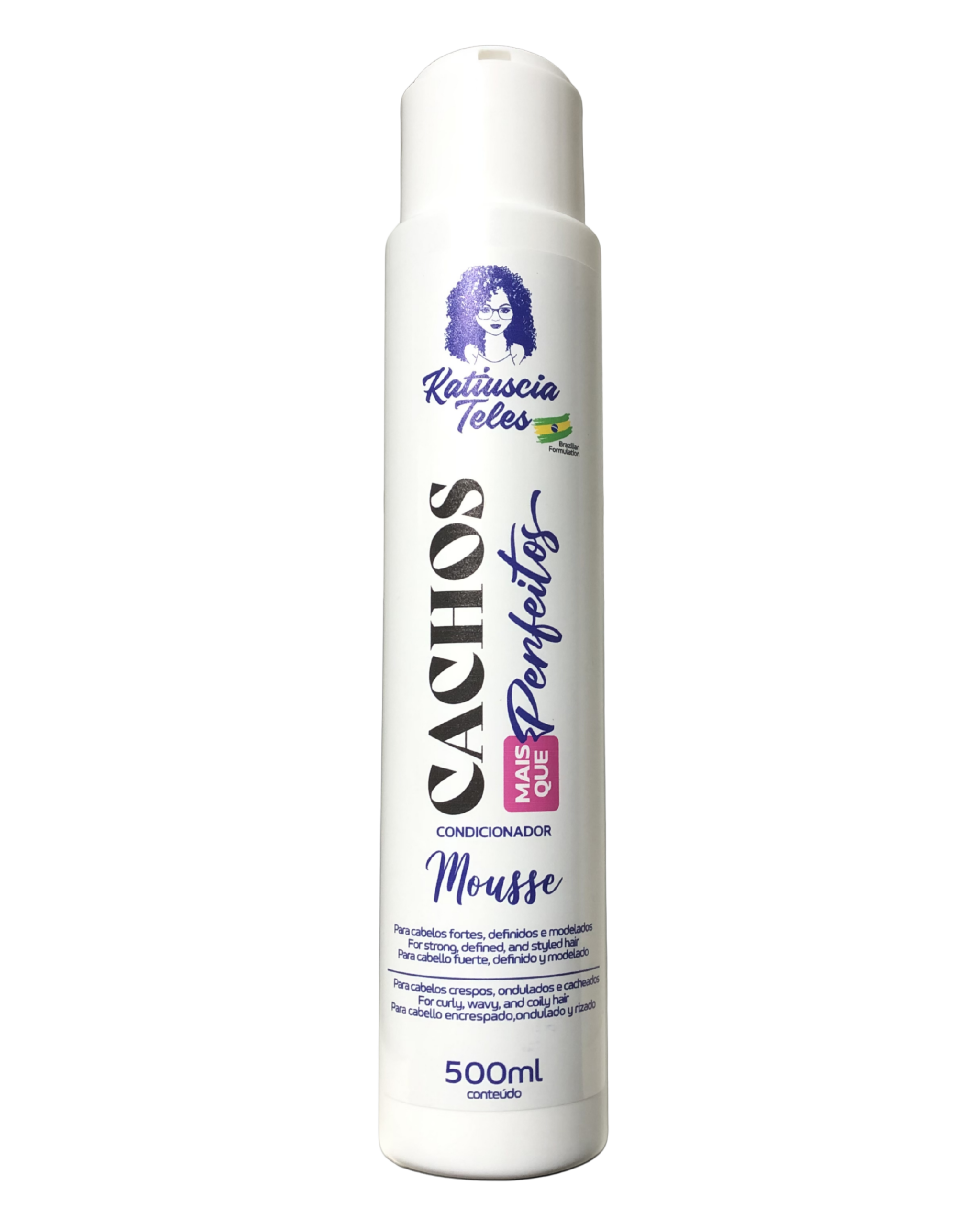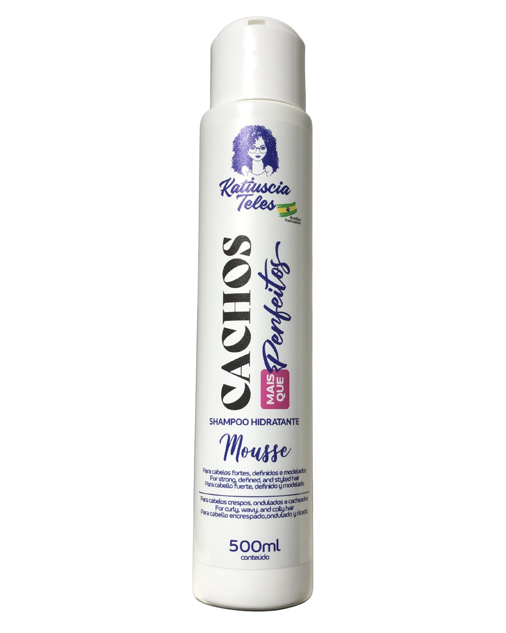 Shampoo Mousse – Cachos + que perfeitos: A linha Cachos + que Perfeitos da Katiuscia Teles foi desenvolvida com os ativos Manteiga de Karité, Abacate e Coco, juntos potencializam a formulação com uma efetiva capacidade de hidratação. Contém vitaminas A e E que funcionam como antioxidantes naturais. Proporciona ação emoliente, melhorando a textura e aparência dos fios. O Shampoo Hidratante Mousse limpa delicadamente couro cabeludo, doando perfume suave.